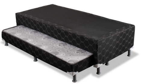 Base Bibox com cama auxiliar desenvolvida com espuma D-28 100% poliuretano e tecido 100% poliéster altamente resistente e com bordado em matelassê. Possui propriedade antiácaro e antialérgica, garantindo conforto e durabilidade. Base estruturada em madeira de reflorestamento e compensado. Ideal para quem busca praticidade. Acompanha somente colchão auxiliar.